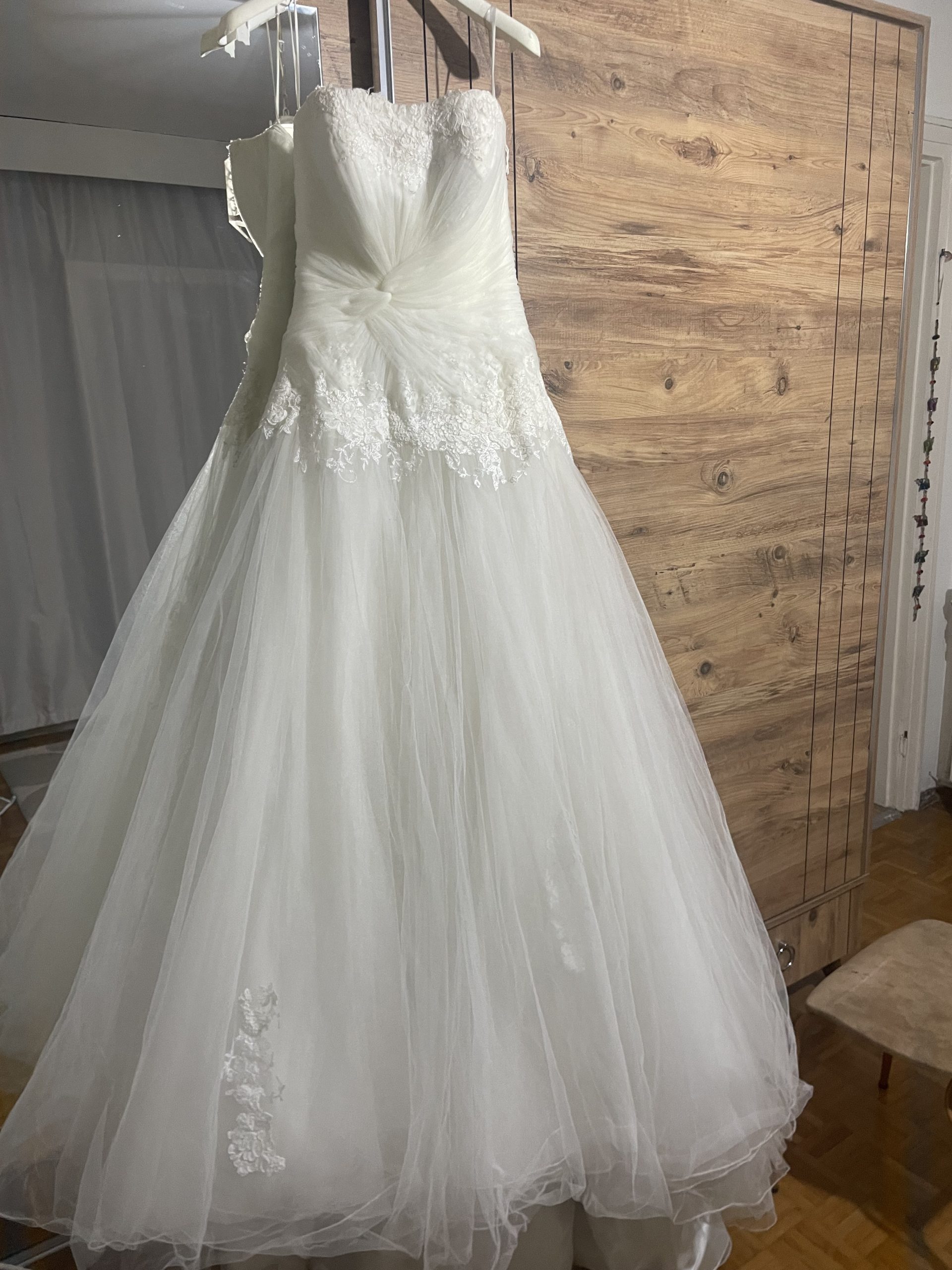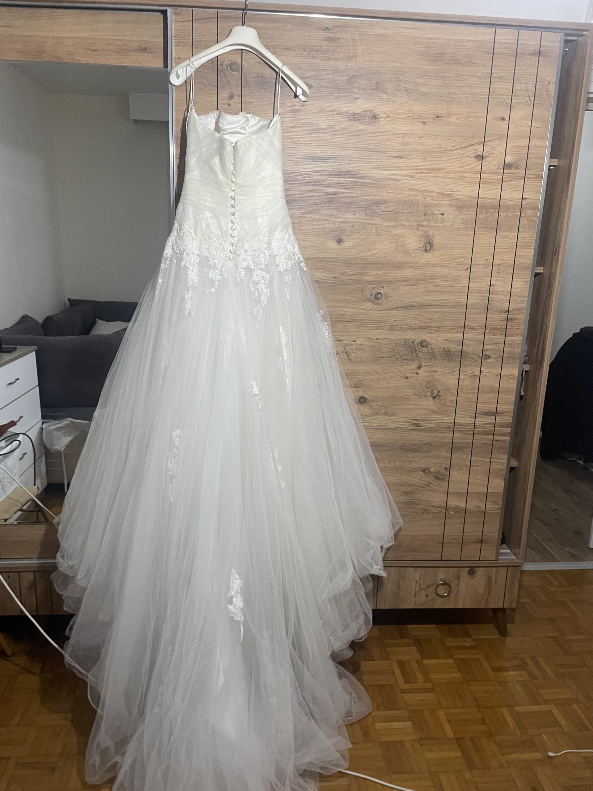 Vakko gelinlik arkası uzun kuyruklu bir kez giyilmiş.